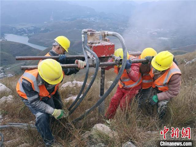 资料图:黔源电力光照光伏项目人工钻孔。黔源电力供图