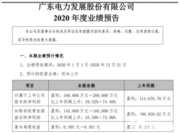 从市值看,截至2月24日上午11点,粤电力的市值196.4亿,在电力类71家上市公司中排名22位,也属于排名比较靠前的头部企业。从其近几年的营收情况看,从2016-2019年的时间段看,其营收一直稳步增长,4年平均营收超过265亿元。其盈利能力也始终能保持无亏损状态,根据最新财务预告显示,2020年公司归属净利润约为16亿到20亿之间,归属净利润增长39.52%~74.40%之间。