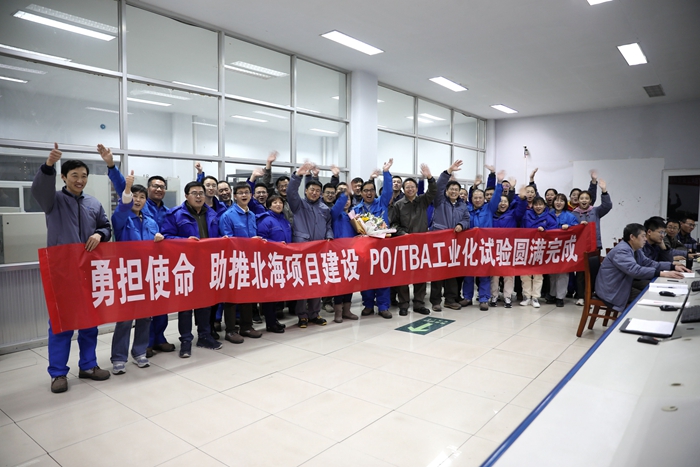 PO/TBA项目小组从2017年9月成立,历时3年多时间。2020年12月17日,经过72小时的稳定运行,PO/TBA装置工业化试验取得圆满成功。PO/TBA作为碳三碳四综合利用项目的核心装置,其工艺是滨化集团与清华工研院合作自主研发的国内首套共氧化法环氧丙烷技术。该工艺实现多项技术创新,具备完全自主知识产权,不仅打破了国际化工巨头的技术垄断,而且在单耗和三废等经济和环保技术指标方面优于国际同类先进装置的水平,已经具备产业化条件。