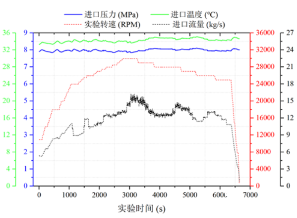 研究团队此次也对测试平台进行了改进,优化了压缩机实验循环系统,使得实验进口状态始终稳定在设计参数(8MPa,35℃)附近;改进了压缩机进口状态测量方法,采用间接测量法,极大地提高了压缩机进口温度测量精度及响应特性,进口温度间接测量误差小于0.025℃,远小于现有A级温度传感器测量误差。